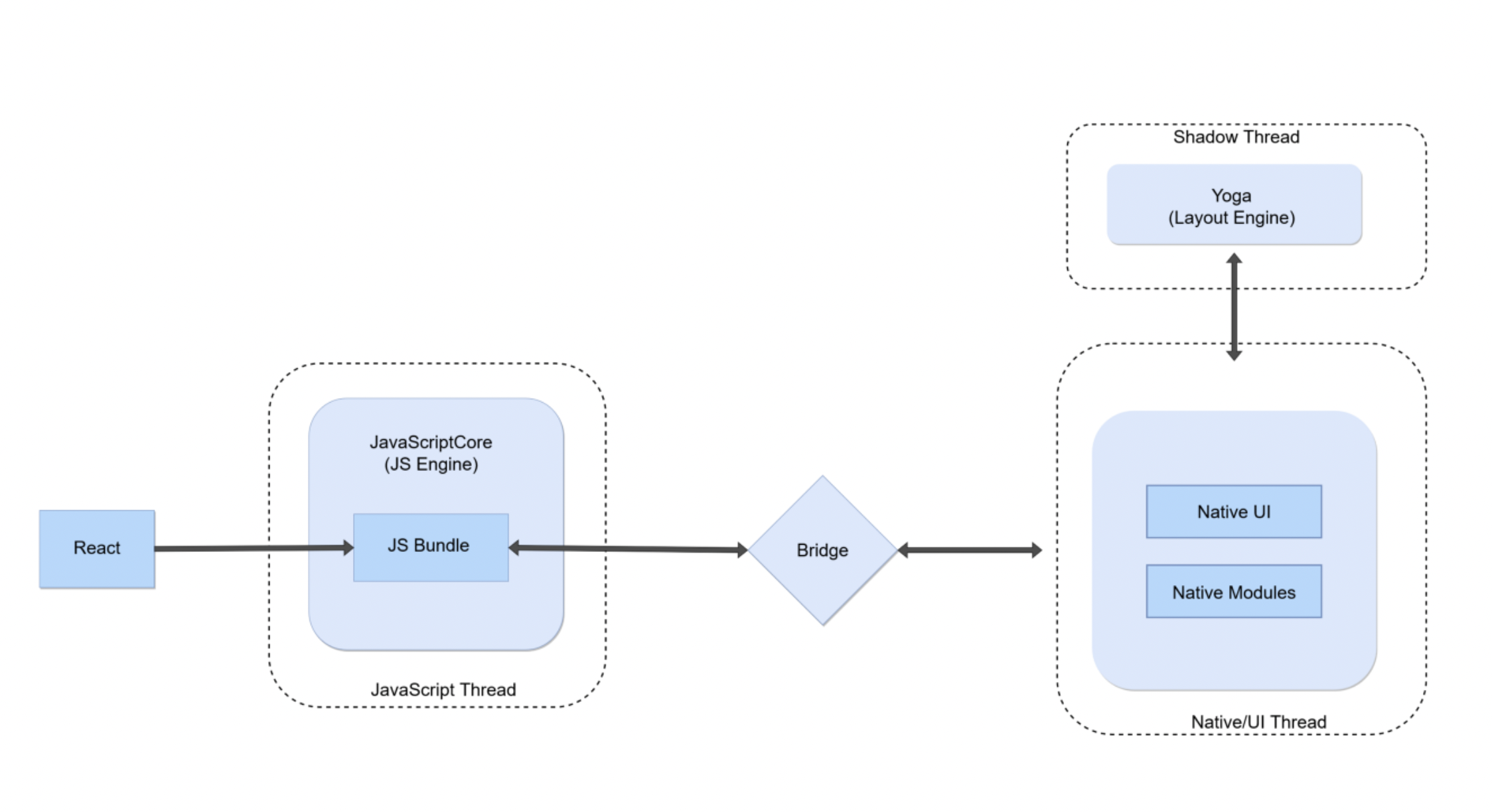 React Native는 webview 기반으로 실행되는 Hybrid App과는 달리, Javascript Engine만사용하고, webview가 아닌 Native UI를 직접 Bridge 하는 방식을 사용한다.